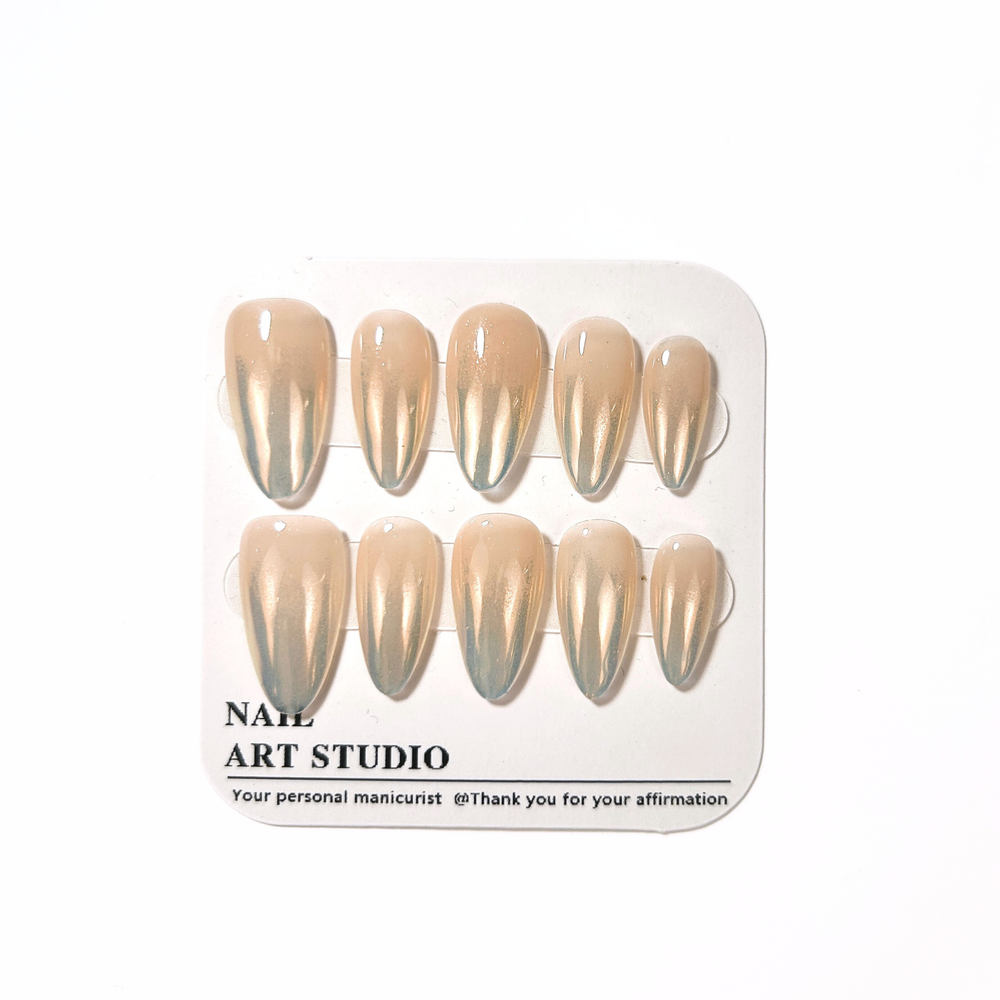 Subtle, dreamy, and oh-so-feminine.Say hello to Ocean Glaze Tips , a soft shimmer nude base fading into a gentle blue sheen. Like waves meeting sunlight.